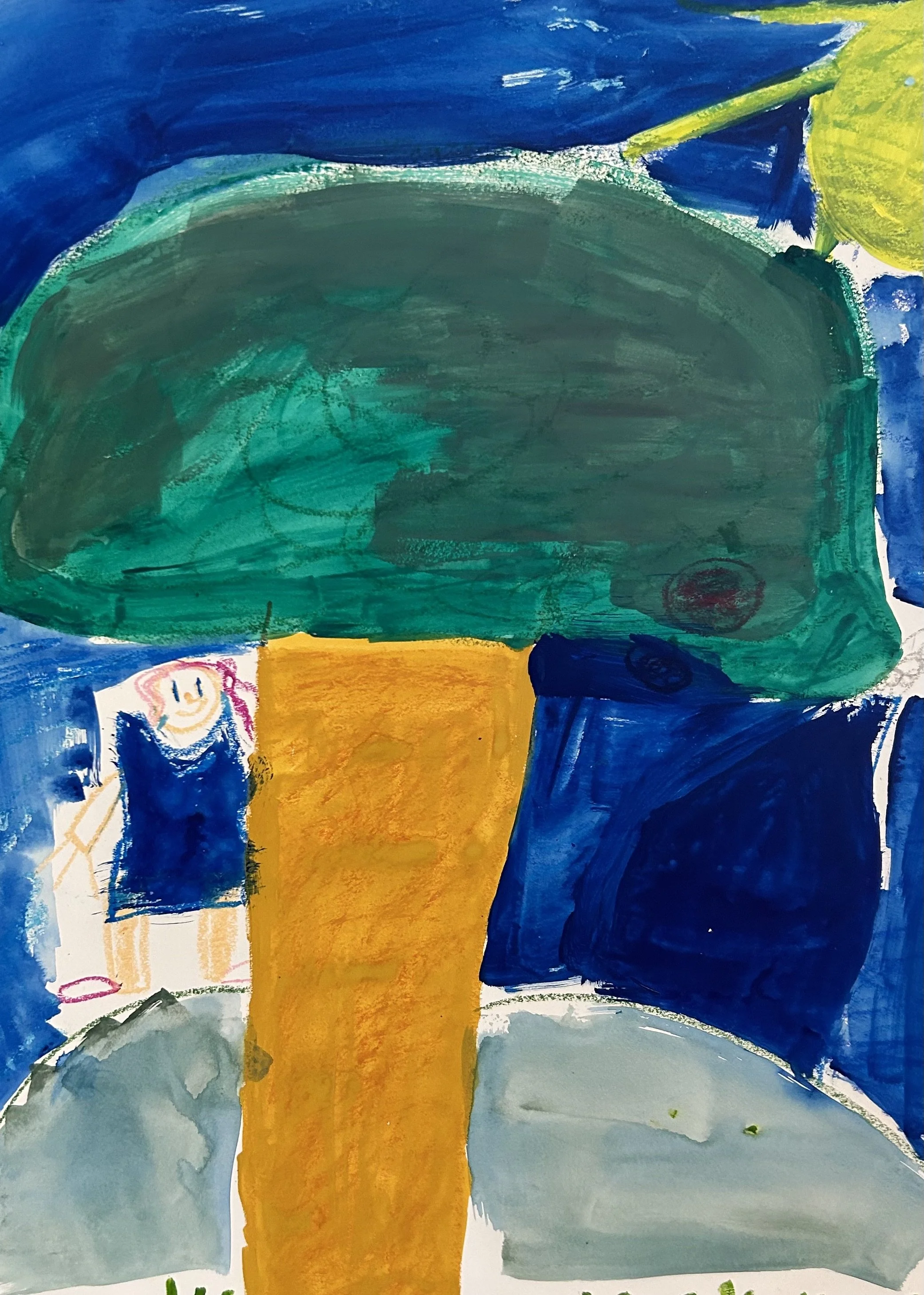 Welcome back to in-person. Welcome home, welcome nature, welcome to community. We are here and you are welcome here to view our students' artwork. We began with a simple idea, to draw a house, a tree, a person. Can you reproduce what you see, what you imagine, what you feel? With the basics of a box of crayons (oil pastels actually) and a big sheet of blank paper (multimedia) we sought to portrait iconic forms? Our practice was to “draw big”, I said. “Color bold”, I said, in Big Art one day. This monthly whole school art experience is just that, an experiential with art materials. Returning to this drawing for a second session, we then washed the background last with watercolors. Now our forms had atmosphere and attitude. Allure of the House/Tree/Person spread to Makers’ Group; a parallel whole school monthly OT building experience. There students patterned leaves to create a collaborative tree. The lattice and frame of a house was fashioned to house and honor photos of the artists, completing this triadic archetype. Spend time with each art piece, as each artist spent time in their art process. These pieces have vitality and their own personality. Contemplate questions about yourself. What do these drawings say to me? What does a house mean to me? A tree? A person? As a viewer, you are now in a projective relationship silently communicating with the subject in front of you. Your inner world, like the students, is being drawn upon. Therein is the formation of a mutual reality.